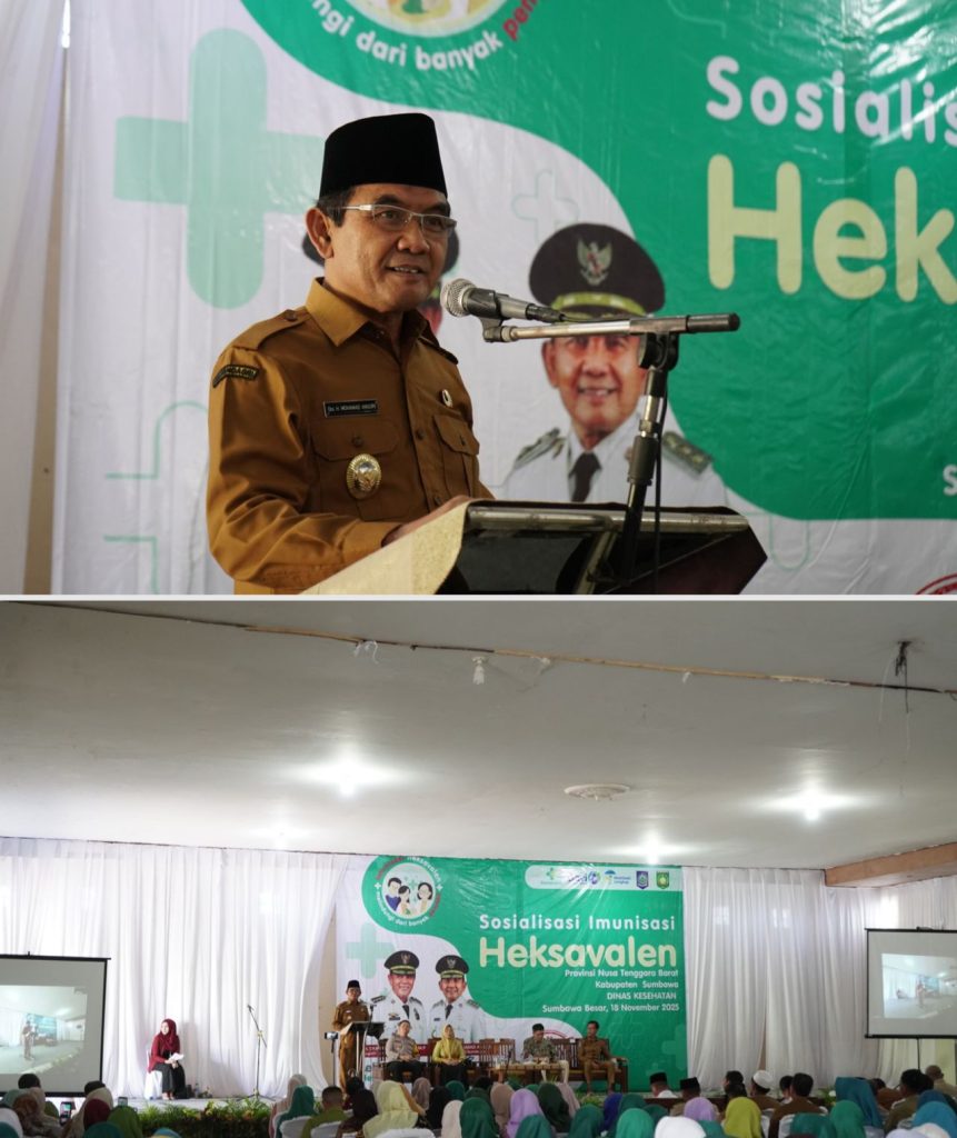 Sumbawa Lensa News.com— 18 November 2025 — Antusiasme tinggi terlihat di Gedung Serbaguna Pantai Baru, Labuhan Sumbawa, Selasa pagi. Sebanyak 600 peserta dari berbagai unsur masyarakat hadir dalam Sosialisasi Imunisasi Heksavalen yang digelar Dinas Kesehatan Kabupaten Sumbawa dan dibuka langsung oleh Wakil Bupati Sumbawa, Drs. H. Mohamad Ansori.