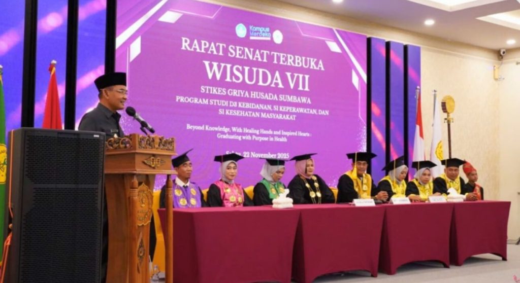 Pesan itu ia sampaikan pada Wisuda VII STIKES Griya Husada Terbuka Sumbawa yang berlangsung di Ballroom Hotel La Grande, Sabtu (22/11/2025), yang diikuti 74 lulusan dari D3 Kebidanan, S1 Keperawatan, dan S1 Kesehatan Masyarakat.