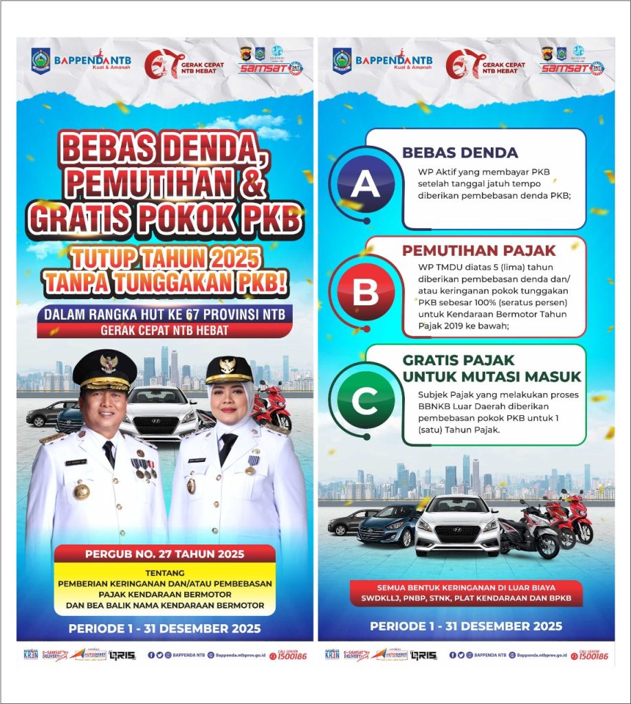 Dorongan publik juga makin kuat berkat kebijakan strategis Gubernur NTB melalui Gebyar Diskon dan Keringanan PKB sebagai hadiah bagi masyarakat NTB dalam rangka HUT NTB yang ke 67, yang tertuang dalam Pergub No. 27 Tahun 2025.