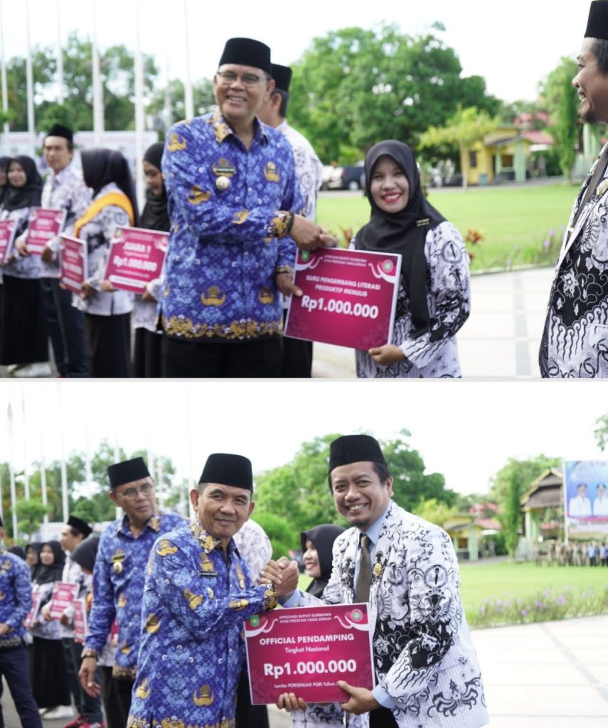 Pemerintah Kabupaten Sumbawa turut menyerahkan penghargaan kepada para penerima Anugerah Guru Prima (AGP) PGRI 2025 dan Porsenijar PGRI 2025, termasuk Ririn Yuliana, S.Pd, yang meraih Juara 1 mulai dari tingkat kabupaten hingga nasional, serta sejumlah guru dan kepala sekolah yang menorehkan prestasi provinsi dan nasional.